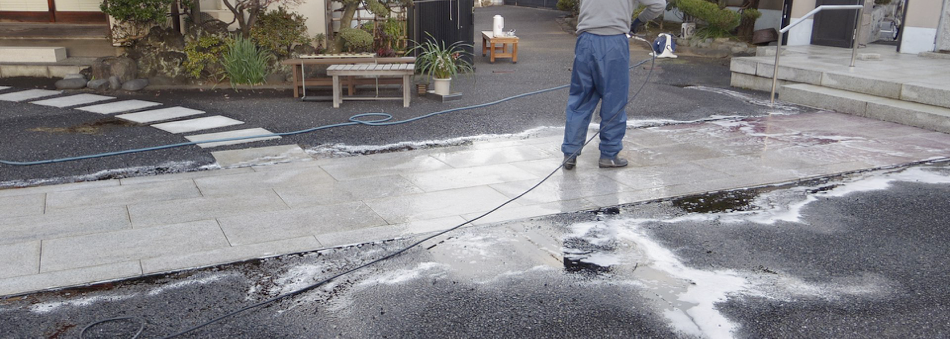 一生物といわれる石材でも、長年のご利用で水垢や苔、落としきれない汚れが付着します。高圧洗浄機はもちろん、様々な洗剤を駆使し花崗岩表面の清掃をいたします。ご相談、お問い合わせお待ち申し上げます。