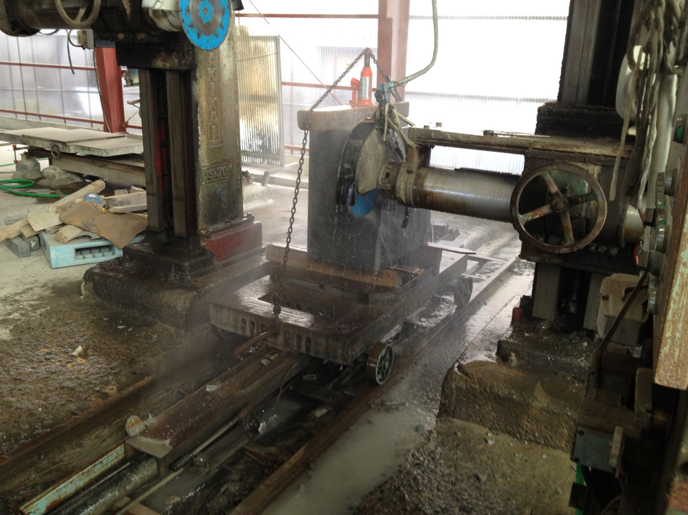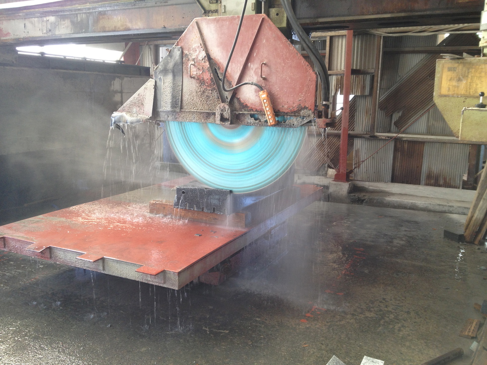 石をお好みのサイズに切ったり、穴を開けたりします。大型切削機、中型切削機、小型切削、ハンディー切削など完備。ほとんどの石材加工に対応します。既存石材製品の補修、サイズ変更などにも対応します。