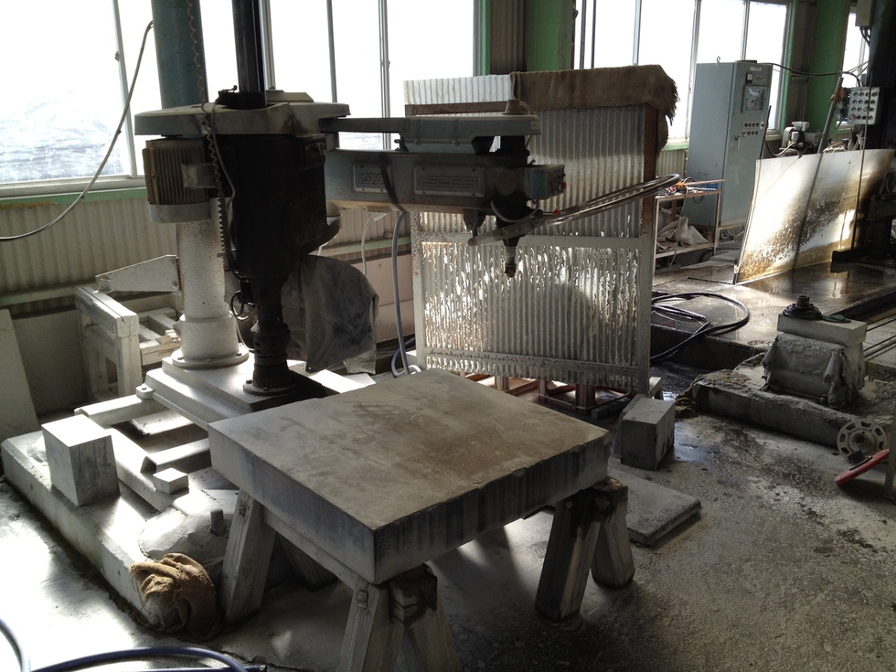 石をお好みのサイズに切ったり、穴を開けたりします。大型切削機、中型切削機、小型切削、ハンディー切削など完備。ほとんどの石材加工に対応します。既存石材製品の補修、サイズ変更などにも対応します。