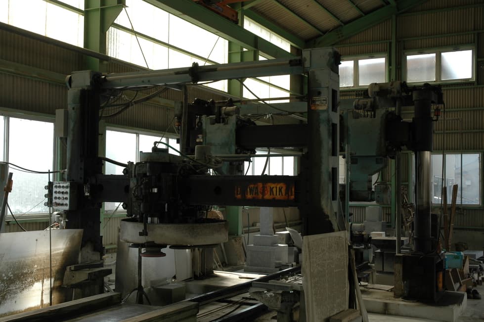 石をお好みのサイズに切ったり、穴を開けたりします。大型切削機、中型切削機、小型切削、ハンディー切削など完備。ほとんどの石材加工に対応します。既存石材製品の補修、サイズ変更などにも対応します。